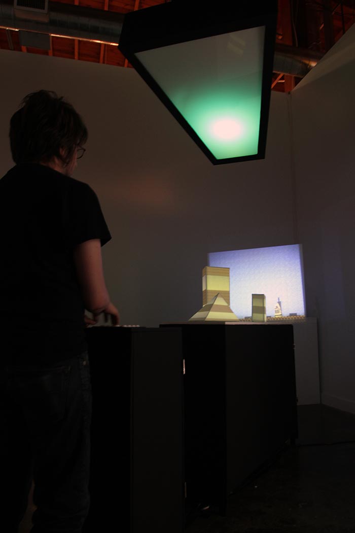 An interactive installation that merges tactile objects, sound, animation and lightsequences into a spacious tangible interactive machine,