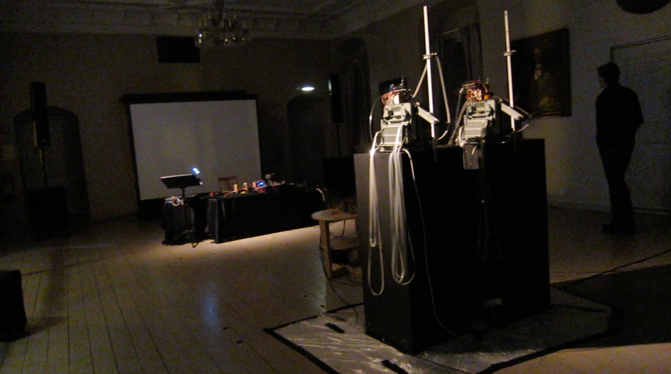 The artists are mere operators, following a strictly composed script turned imperfect by the unpredictable nature of analogue sound and visuals.